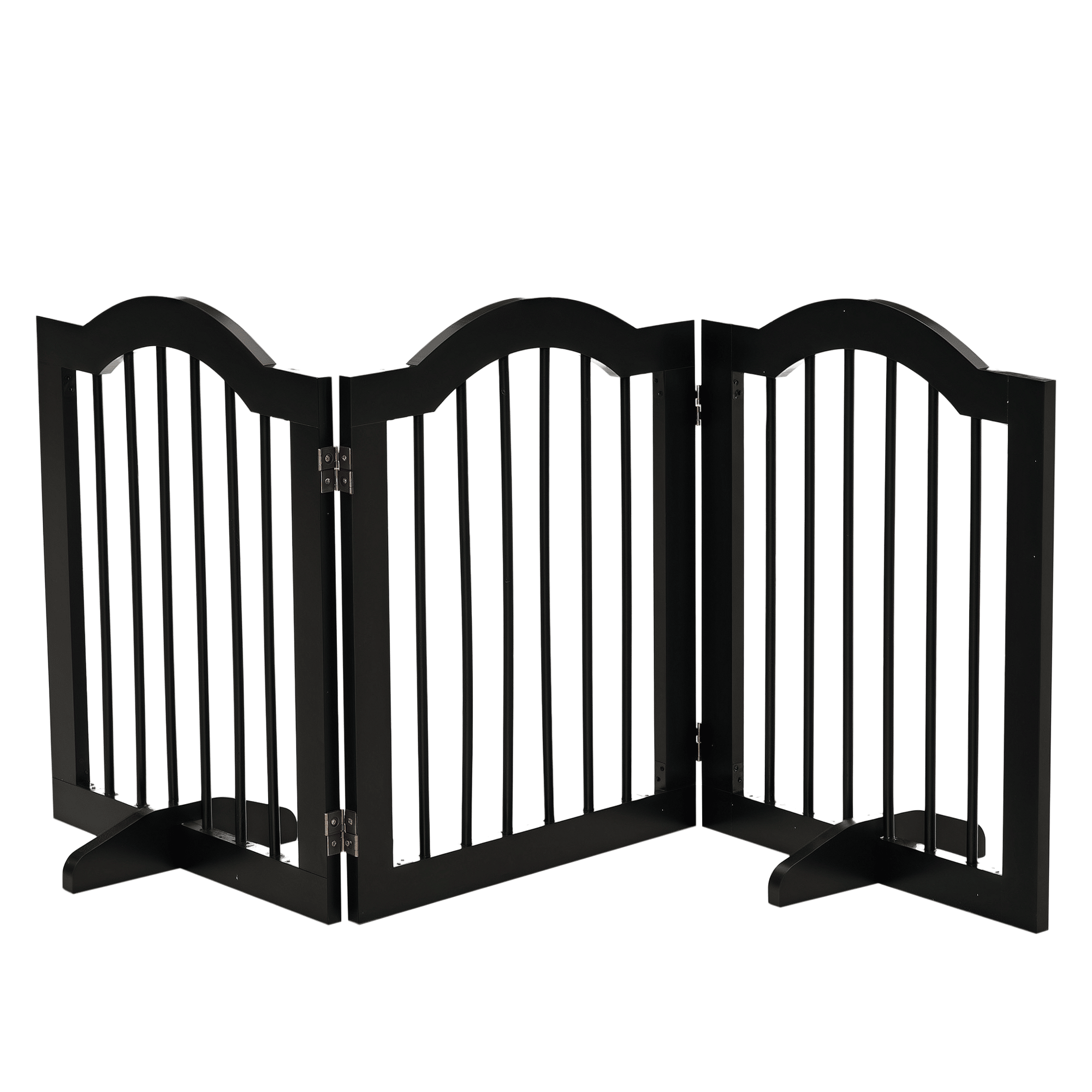 24"H Foldable Dog Gate, 3 Panels Freestanding Pet Gate Barriers Indoor with Support Feet, Puppy Fence for Small Dogs, Black