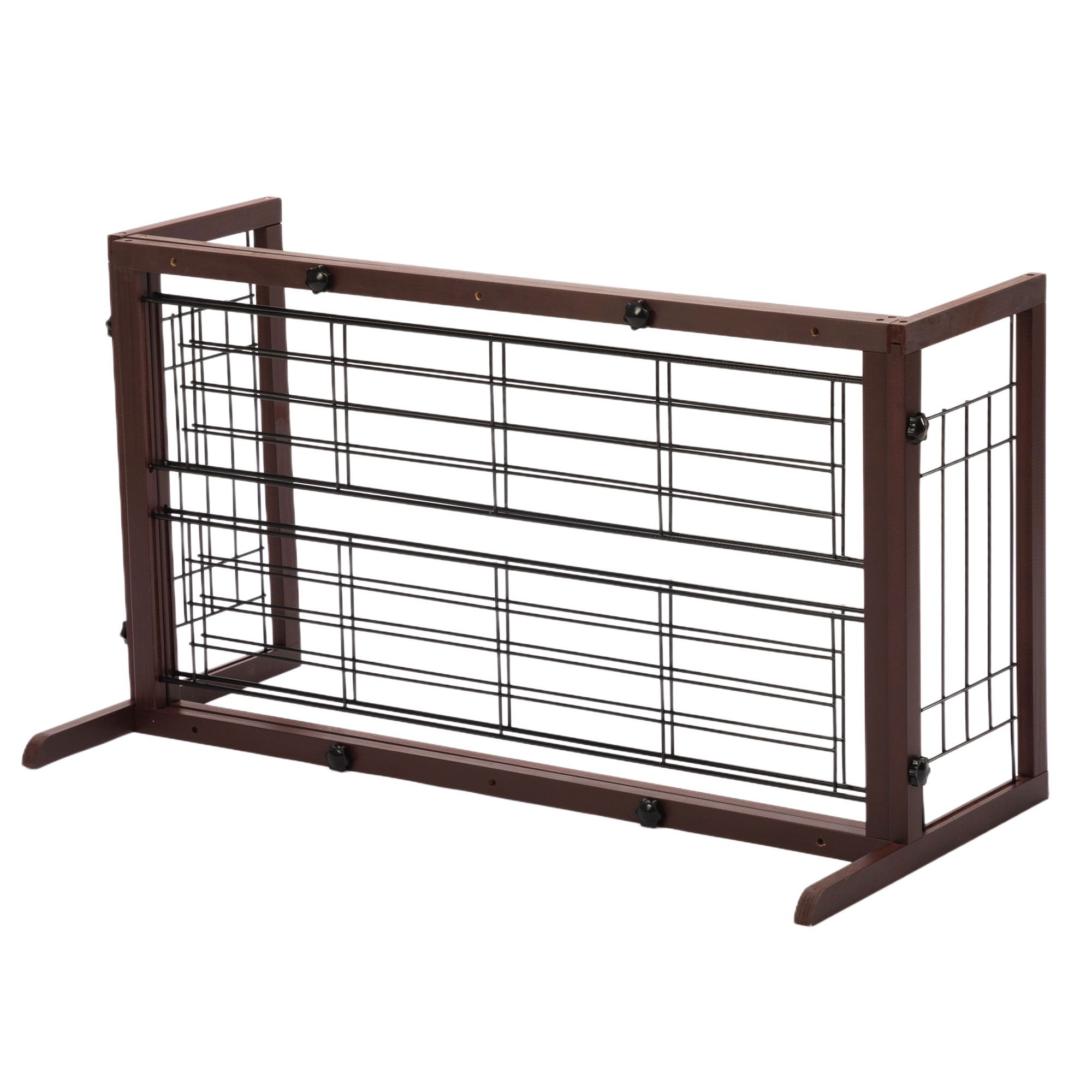 [Stylish Solution for Pet Containment]: This freestanding dog gate is a stylish and versatile pet barrier designed to keep your furry friends safe and secure in their designated space. The gate's sleek design and minimalistic style blend seamlessly with your interior design.
