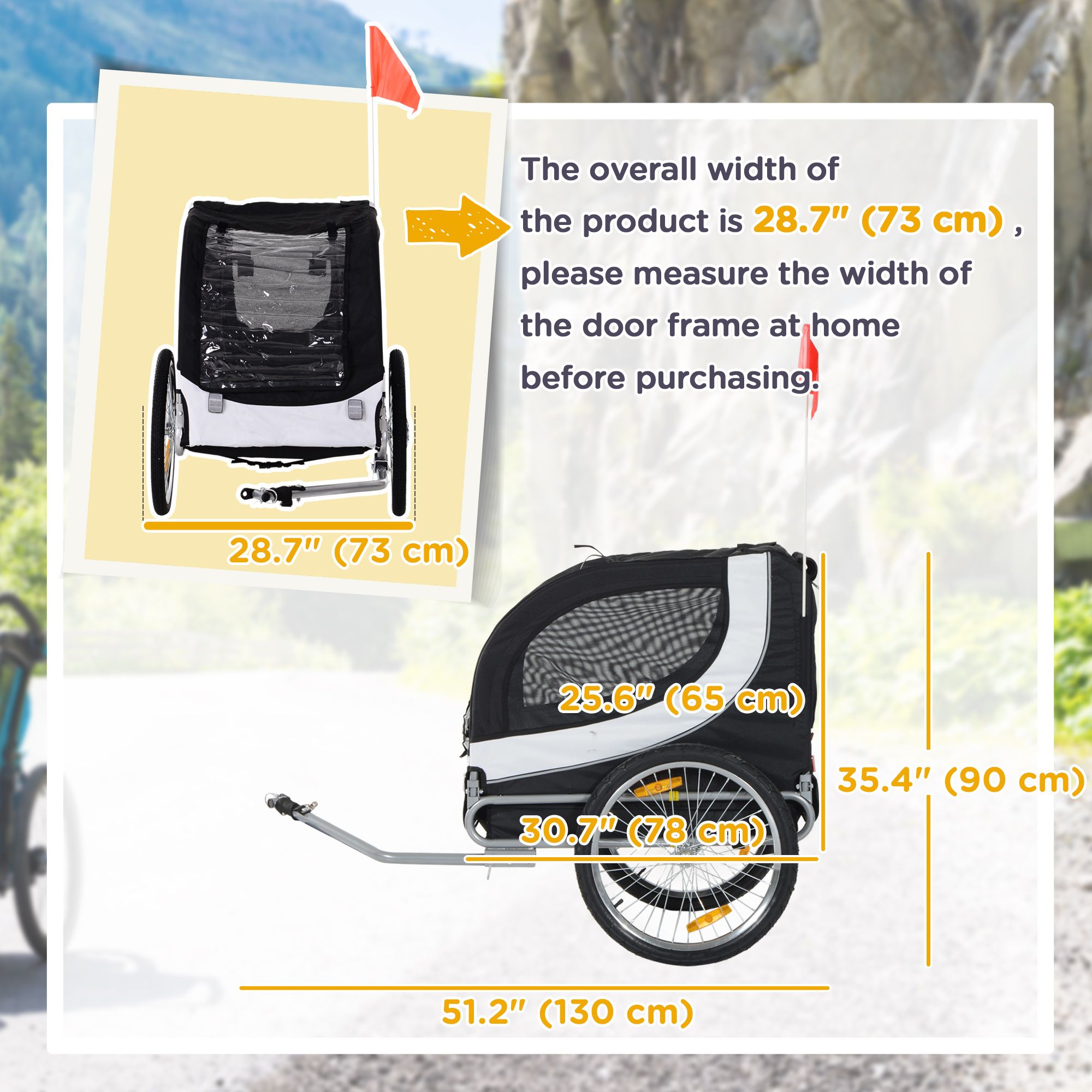 Dog Bike Trailer, Pet Cart Bicycle, Wagon Cargo Carrier Attachment with Hitch, Reflectors, Flag for Medium Dogs, Pet Wheelchair for Travelling, White